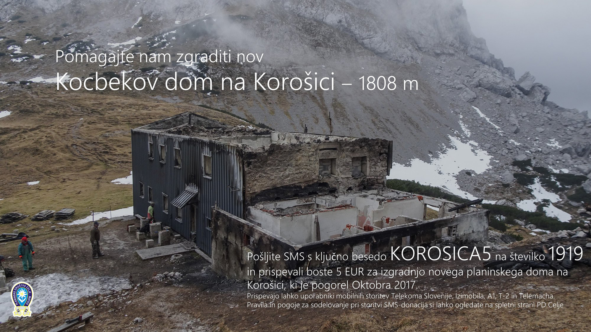 Doniraj za izgradnjo pogorelega planinskega doma na Korošici. Pošlji KOROSICA5 na 1919