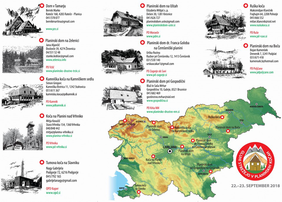 Akcija bo 22. in 23. septembra potekala na naslednjih planinskih domovih: