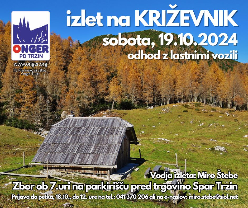 PD Onger Trzin vabi v soboto, 19. 10. na KRIŽEVNIK