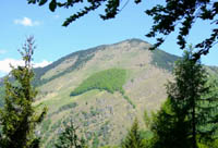 Hudičev boršt na južnem pobočju Zaplate, v ozadju vrh Cjanovca (1820m) |