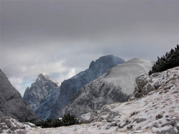 Pa je padla prva zimska tura (pravzaprav tura v zimskih razmerah), ne pa tudi željeni cilj - pa naslednje leto! Že pri Žagani peči sem se razveselil prvega snega letos - nekaj cm ga je bilo! Vedel sem kaj to pomeni, a sem se navkljub vsemu odpravil skozi Gamsov skret na Kogel (2100 m). Izpostavljeni prehod pod steno Kogla je bil izredno zaradi snega adrenalinskega značaja! Hitre spremembe vremena, izjemen mraz, veter, sneženje so me prisilil k sestopu mimo Malih Vratic na Kokrsko sedlo in potem v dolino.