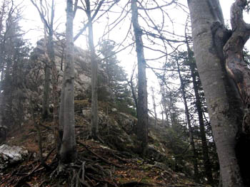 Prvi maj, praznik dela, si je Tomaž naložil malo več dela ... Zadal si je zanimiv cilj: grebensko prečenje Mešenik (1099 m) - Špegarca (1364 m) - Kamniški Dedec (1586 m). In kaj nam je poročal o svojem vzponu? Zadnji del grebena pod Kamniškim dedcem sem obhodil zaradi dežja. Zelo priporočljiv je cepin za vzpon na greben Špegarce (za kopne razmere), čelada na glavi pa prav tako ne škodi! Snega pod vrhom KD je še precej.