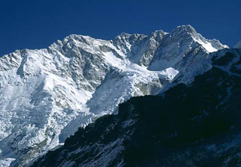 Jalung Kang (8505 m), Kangčendzenga (8586 m), Centralni vrh Kangčendzenge (8482 m) in Južni vrh Kangčendzenge (8476 m) |