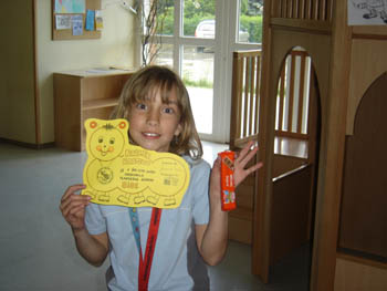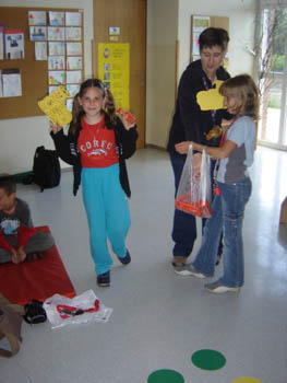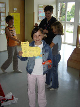 Pravzaprav se je tokratni krožek začel zunaj, pred šolo – pa je potem dež prepodil Bibe v šolo. |