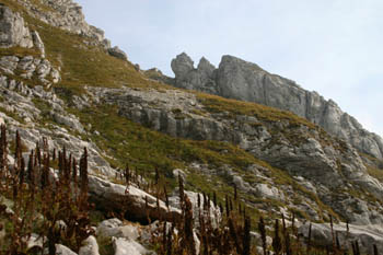 … a najbolj pametno so naredili tisti, ki so odšli na nasprotno stran doline. Pobočja Bovškega Gamsovca nad sedlom Luknja. |