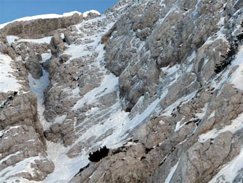 Butinarjeva grapa, 50º/40º, 200 m, PrV: Marko Butinar pozimi 1958; smučarska ocena: IV+, S5 |