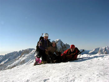 Današnji prvotni plan je bil smuka s Prestreljenika, pa nas je orkanski veter na Nevejskem prevalu odvrnil od tega. Pa smo se zapeljali na Vršič, splezali smo Zupančičevo grapo v Mali Mojstrovki, razmere pa so bile ravno prave. Poskus sestopa skozi Pripravniško grapo ni uspel, zato smo se vrnili na Vršič po običajni poti. Vreme pa itak sončnooo! Postava pa že znana; Bogdana, Lado in Tomaž.