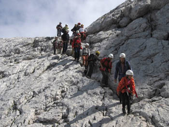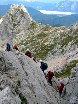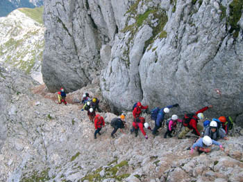 Sicer pa sta pravi plezalni vzpon in bolj lagoden sestop potekala B.P., če odštejemo stalno nakladanje nekaterih … Še kako pomembno pa je bilo, da so bili z nami Miha P. in Boštjan ter starši-spremljevalci. K vsemu je v veliki meri prispevala tudi dobra oprema, zato še enkrat - hvala društvu. Po pravici povedano me je bilo dan pred izletom vsega skupaj kar malce strah, ampak nekaj tega je vedno koristno pred turo po ZPP. Mislim, da so prišli prav vsi udeleženci (19, od tega 9 osnovnošolcev!) na svoj račun, sodeč po razgovorih in nasmejanih obrazih pri avtih! Lahko je žal tistim, ki jih ni bilo (tistim, ki niso mogli opravičimo!), čeprav je bilo glede na zahtevnost ture število udeležencev, vodnikov in spremljevalcev ravno pravšnje. Zdaj pa že razmišljam, katera ZPP bo padla prihodnje leto …