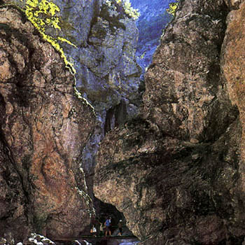 Nad spodnjim, 8 metrov visokim slapom vodi brv, ki pripelje obiskovalca do vhoda v temačna korita. Ta brv je bila avgusta 1999 v silovitem neurju uničena. Takrat je brv odnesel vodni tok.