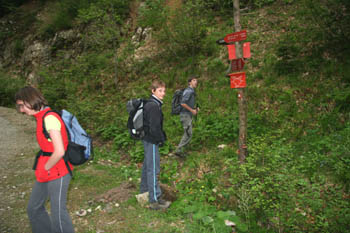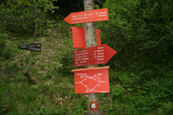 Smerne table ponujajo poti v različne smeri – zanimiva pa je spodnja, ki popotniku predlaga najbolj zanimiv obhod bližnjih vzpetin. |
