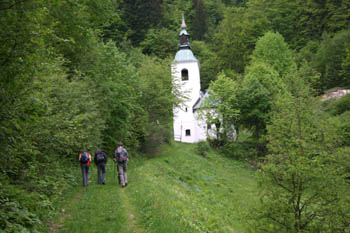 Cerkev sv. Lenarta stoji na gorskem obronku, skrita pod Lepenatko in Velikim Rogatcem. Prvič se omenja l. 1426, vendar je gotovo nastala že v 14. st. Poleg skrivnostne zgodovine in legend, ki so se med okoliškimi kmeti spletale na račun cerkve, je bila zgradba v mnogočem prepuščena usodi narave. Sedanja oblika cerkve je rezultat prezidav po l. 1895, ko je snežni plaz cerkev močno poškodoval. Iz časov turških vpadov naj bi bila tudi veriga, s katero je opasana cerkvena fasada. |