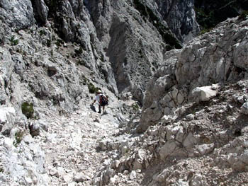Sestop po krušljivi grapi na Ledine |