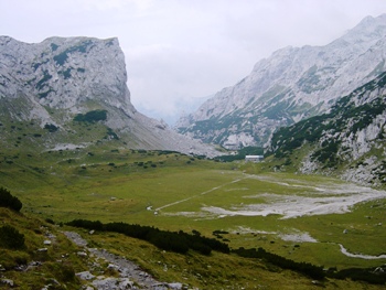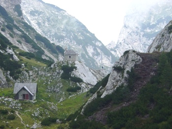 Pogled na "alpinistični raj": ostenje Lučkega Dedca in Vršičev. |