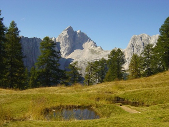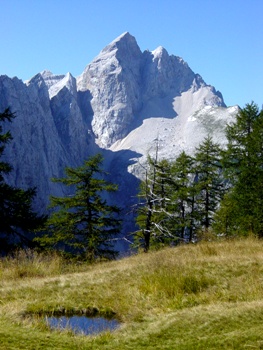 Ravnica pod Slemenovo špico ponuja enega najlepših pogledov na Jalovec. |