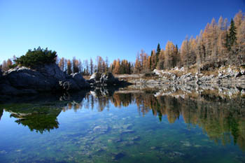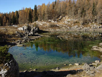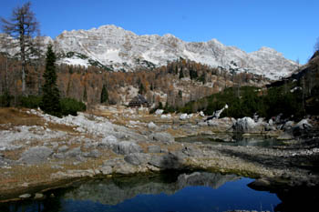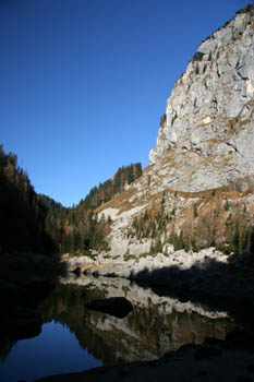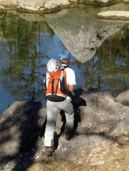 Boštjanu seveda ni padla skala na glavo – to je le odsev v tokrat zelo mirni gladini jezera. (Foto: Irena) |