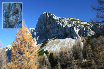 če pogledamo natančno in uporabimo malo domišljije lahko v zahodni steni Male Tičarice opazimo obraz. (Foto: Boštjan) |