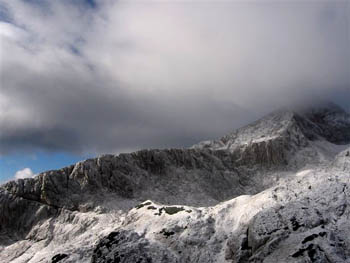 Greben Dolge stene – razgleda z Grintovca tokrat očitno ni bilo. |