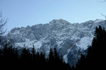 Severna stran Grintovcev, kakor se »na ogled postavi« tistim, ki pridejo na Jezersko. |