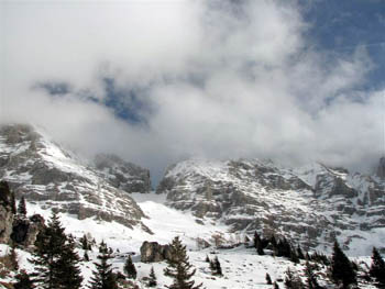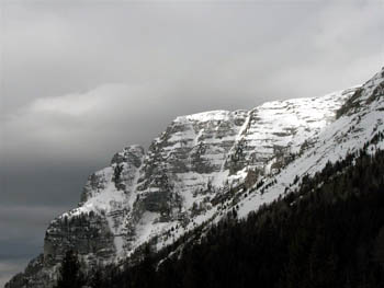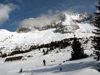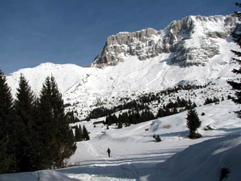 Cesta na planino Pecol je zasnežena, tako, da jo je treba od Nevejskega prevala mahniti navzgor kar peš. Potem naprej proti Škrbini med Montažem ter Curtissonsonom (preval Vrh Strmali (Forca dei Disteis, 2201 m) leži na levi strani Montaževega vznožja, op. EP). Ob obilici težav sva turo zaključila nekje na 3/4 poti, prijateljica pa je potegnila do vrha. No, sonce pod Montažem je pa le močno sijalo! Smuka po cesti pa je bila prav prijetna.