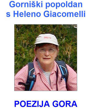 V Domu upokojencev Domžale (Karantanska cesta 5) bo v torek, 4. marca 2008, ob 16. uri gorniški popoldan s Heleno Giacomelli, s katero se bo pogovarjal Borut Peršolja. Vstopnine ni.