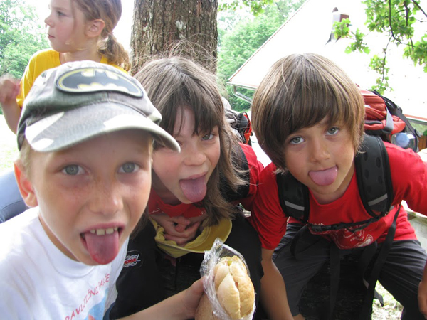 V senci krošnje smo si razdelili še preostale borovnice, ki smo jih nabrali po poti. Obvezno je bilo fotografiranje vijoličnih jezikov, izpolnjevanje krnjižice Mladi planinec ter skupno fotografiranje.
