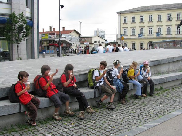 Z nahrbtniki smo se skozi Miklošičev park in mimo televizije Slovenija zagnali proti slaščičarni v bližini glavne avtobusne postaje. Mnjami, še časa ni bilo, da bi se nam kepica sladoleda stopila.