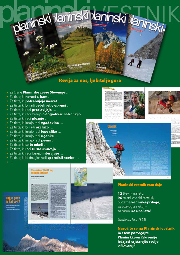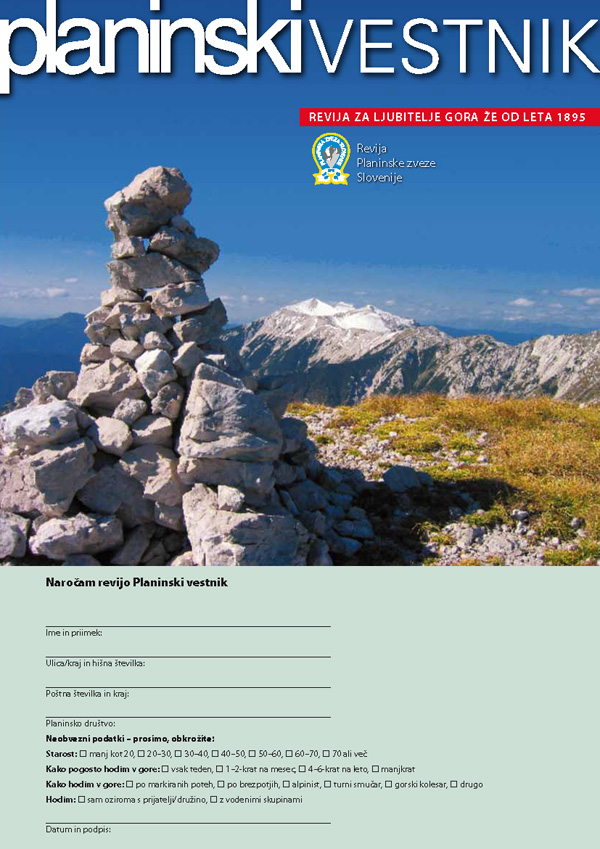 Ta mesec je uredništvo poskrbelo tudi za tisk novih naročilnic. čeprav je v Trzinu precej naročnikov na najstarejšo slovensko revijo bi bilo vendarle prav, da Planinski vestnik pride v vsako planinsko/gorniško/alpinistično/plezalno ... družino. Naročilnico lahko dobite na društvu, kmalu pa bodo na voljo tudi v papirnici čačka!