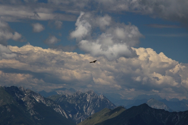 Minuli teden smo bili z družino na Bovškem (vikend Na Skali smo tokrat zamenjali za staro Pavrovo domačijo v Čezsoči ...) in se v torek, 15. 7. povzpeli s pl. Zaprikraj na Krasji vrh. Že med malico na vrhu smo opazili ob ovčji lobanji nenavadna ptičja peresa, kmalu zatem pa so nas začeli obletavati beloglavi jastrebi. V nekem trenutku smo jih našteli kar 13! Med spustom smo naleteli še na eno razmesarjeno ovco.