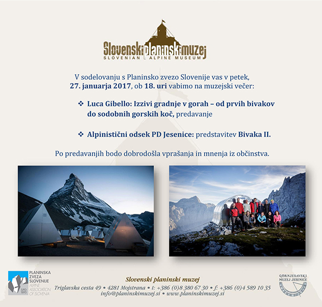 Vabilo SPM: Izzivi gradnje v gorah in predstavitev bivaka II 21.01.2017