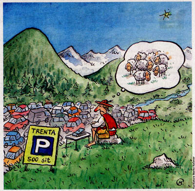 Naslednje novice bodo na naših spletnih straneh objavljene predvidoma 23. julija. Do takrat pa uživajte v gorskih potepanjih – in če se le da, se ne vozite v najbolj obljudene predele naših gora. Drugače se vam bo zgodilo enako, kot vidimo na karikaturi iz dnevnika Delo.