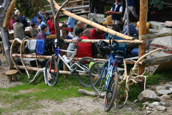 Okrog koče se je kar trlo pločevine, le da sem jaz zaspal in mi je bilo dosti šele, ko so so mimo pribrzeli na štirikolesniku. Bili so domačini, ki so se pripeljali od nekje zgoraj, eden pa je ljubosumno stiskal k sebi veliko motorno žago, ki je za praznik verjetno tulila svojo serenado po nekoč tihi dolinici.