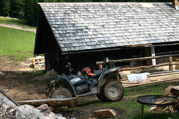 Štirikolesnik je pa, kot izgleda, na planini že bolj domač. |